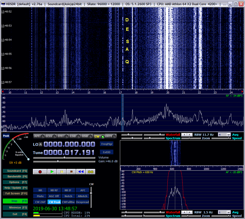 to the line input of the Delta 44 sound card, using its 24-bit ASIO driver and the HDSDR software.