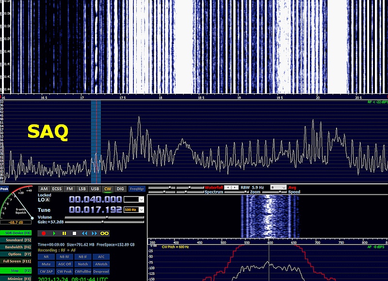 The 17.2 kHz SAQ transmission was received using the Elad S2 receiver, that can easily go down to 10 kHz.